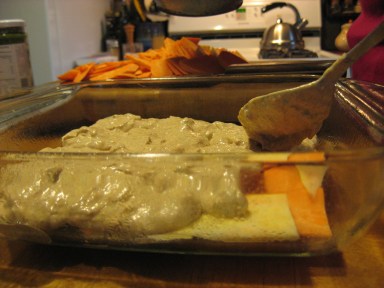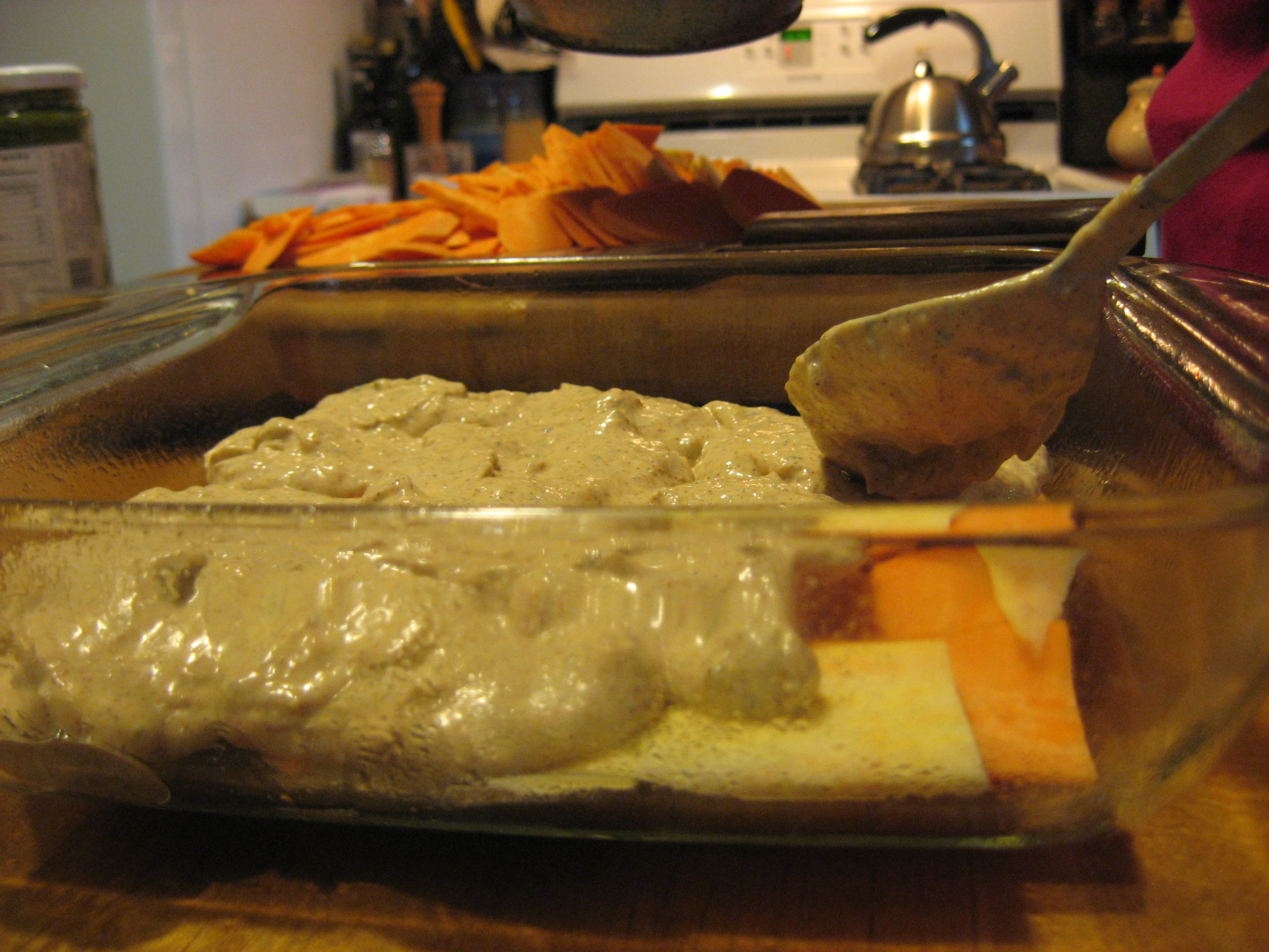 1 1/2 lbs of sweet potatoes, peeled and sliced thin