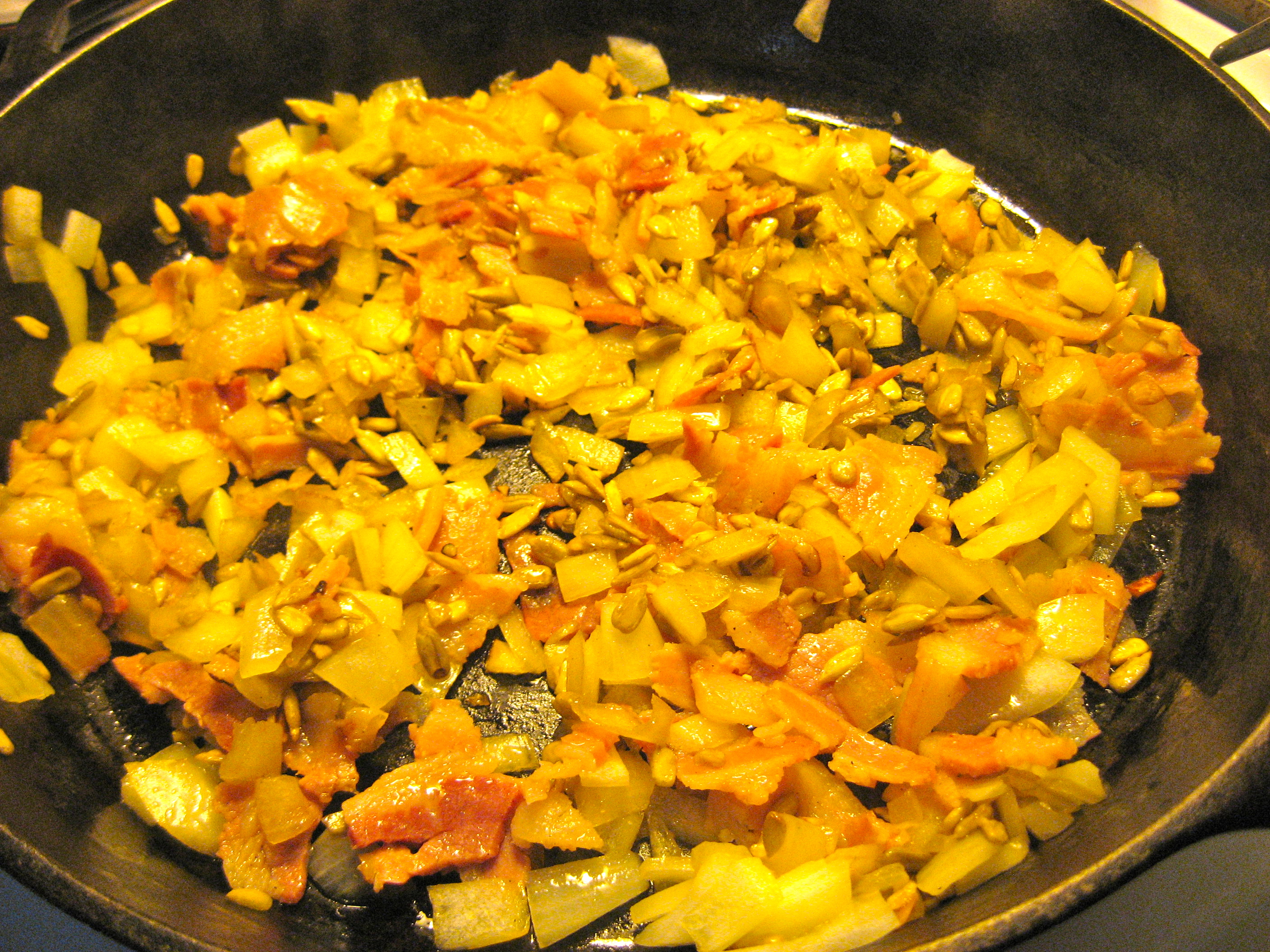Put a large skillet on medium-high heat. Add olive oil, pancetta or bacon, and onion and stir. Once onion has become translucent add your sunflower seed kernels and stir. Place broccoli in a microwave safe bowl and MW until tender crisp and drain. Continue to saute onion mixture until onion begins to color. Add broccoli, lemon juice, sun-dried tomatoes, and thyme to onion mixture and mix thoroughly. Add this to your cooked pasta and toss, season with salt and pepper. Serve with grated parmesan. Enjoy!
