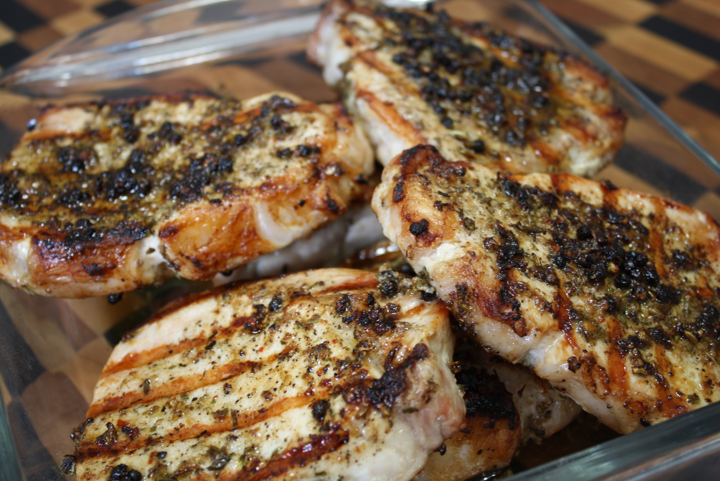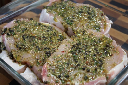 Put chops in the refrigerator for 90 minutes to marinate. Remove 30 minutes before grill time (total marinating time 2 hours)