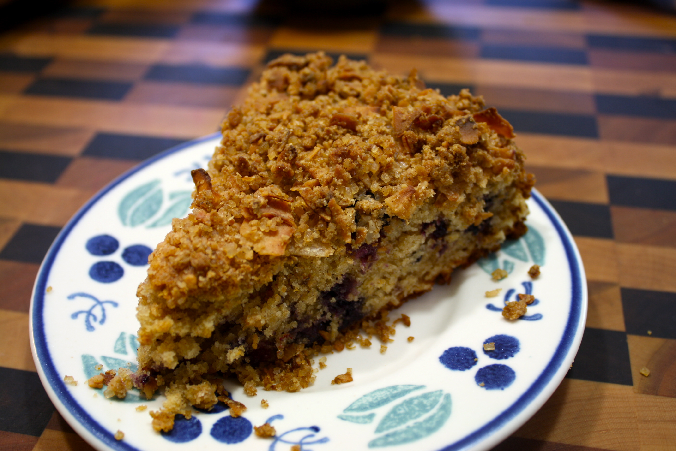 My oldest son was home this weekend so I got back into the swing of things. I found an old recipe of mine for a coffee cake with blueberries and a coconut topping. Sounded perfect for Sunday morning with guys who like to sleep in. Nothing like the smell of cinnamon, blueberries and coconut to wake them up.