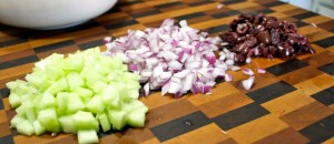 Use a fork and fluff the mixture, then let it cool while you chop the remaining ingredients.