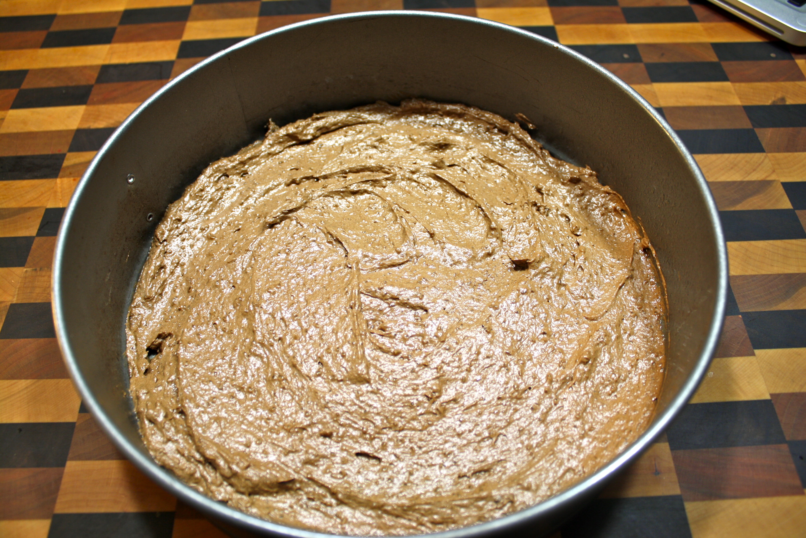 In a medium bowl, combine dry ingredients for chocolate layer – flour, cinnamon, salt, baking powder, cocoa. In your stand mixer’s bowl beat the butter, sugar until creamy. Add eggs one at a time and then vanilla. Add the dry ingredients and beat well to mix, reserve ¼ cup to use for the top decoration. Pour remaining batter into baking dish. (If you have 2 mixing bowls for your mixer, I salute you! Otherwise, rinse out the bowl and the paddle to continue.)