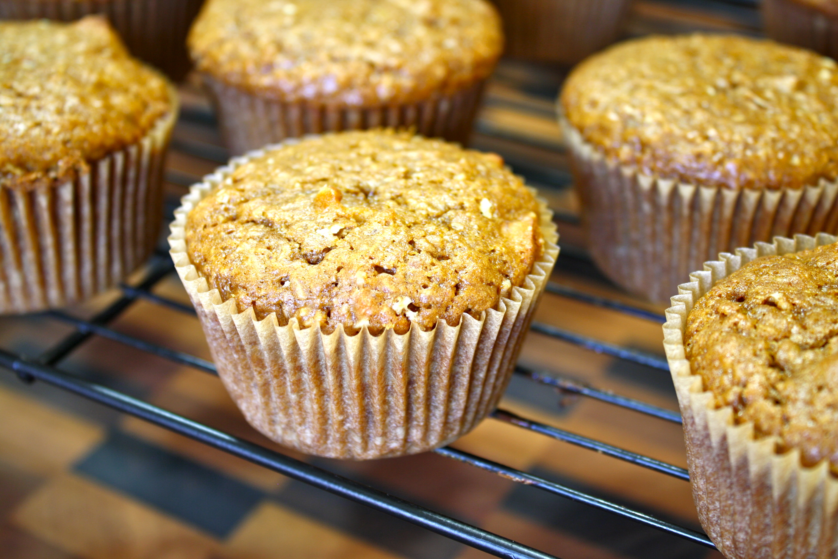 We make these with whole wheat flour and shredded wheat (crumbs from breakfast cereal that I save-does my frugality know no bounds?), then add molasses and maple syrup for sweeteners. To up the nutrition, I use yogurt and milk then add dried apple and walnuts. I hadn’t really planned on posting these, but they were SO GOOD….I just had to. In fact….they were (yes, I’m going to say it) Awesome!