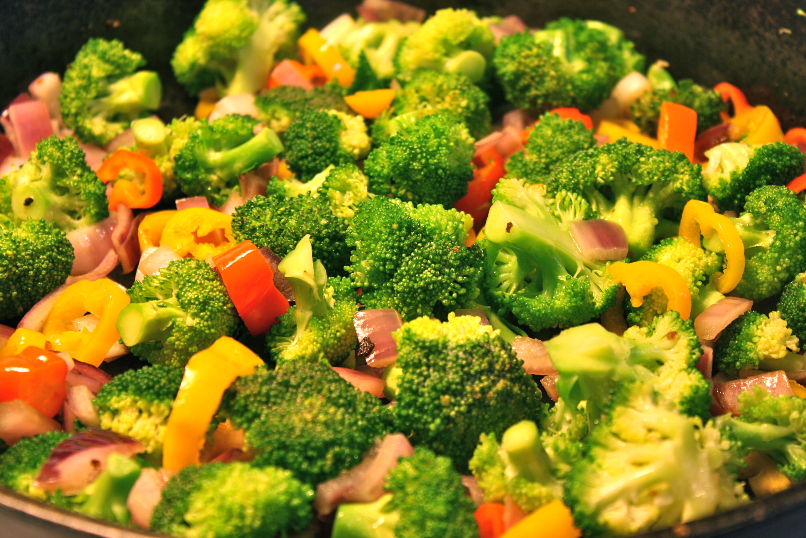 Add more olive oil to pan and saute the broccoli, red onion and peppers until tender crisp. Add vegetables to bread cubes. Heat grilled chicken in microwave and add it, along with the olives and feta to the mixing bowl. Pour dressing over entire contents and toss well. Serve immediately. Enjoy!