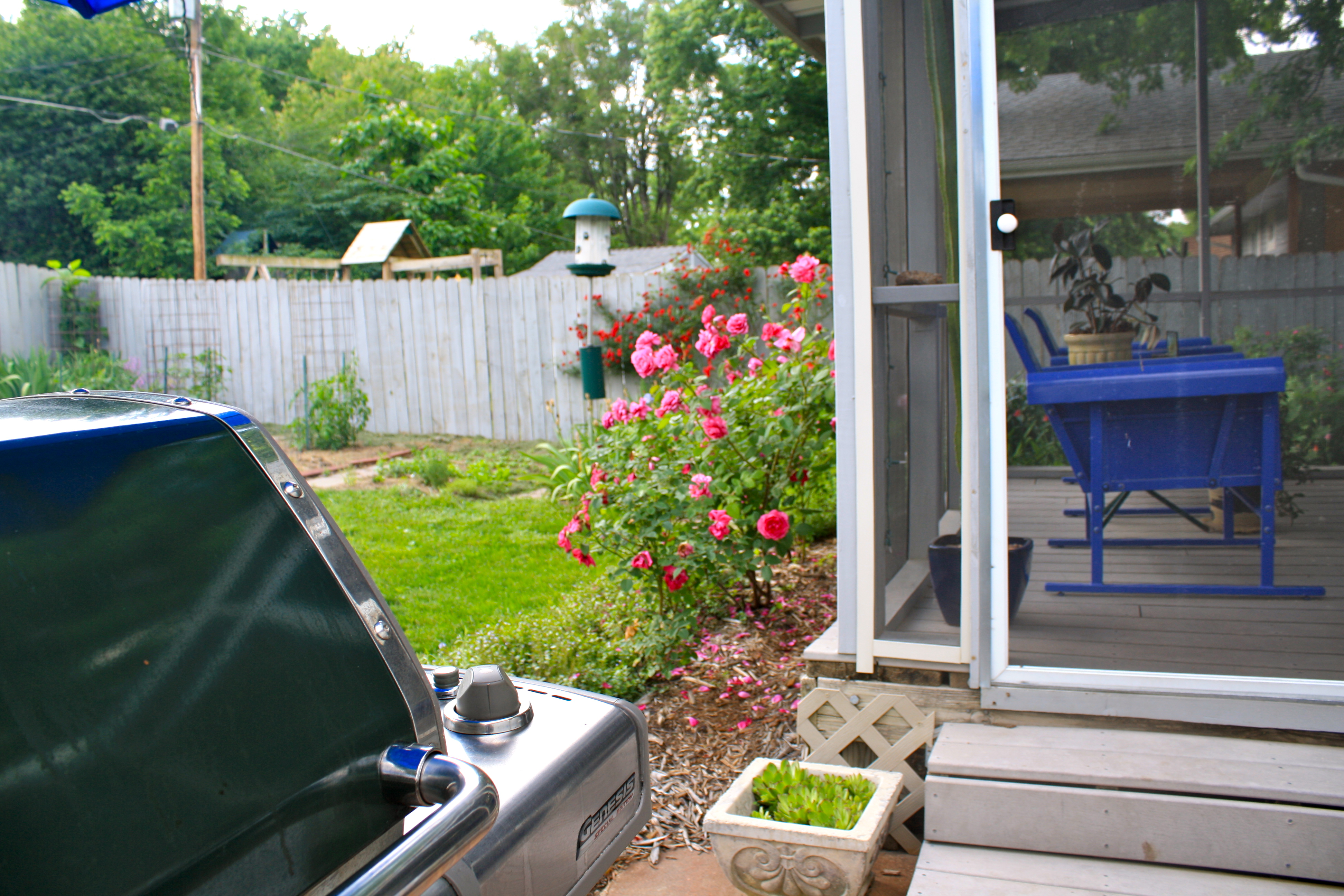 My husband loves my basil because I make a grilled basil pesto pizza with it. I made our first pesto dinner earlier this week with the thinnings. He decided that I should make the grilled pizza tonight. I had to tell him that I don’t have enough basil growth to make it……yet.