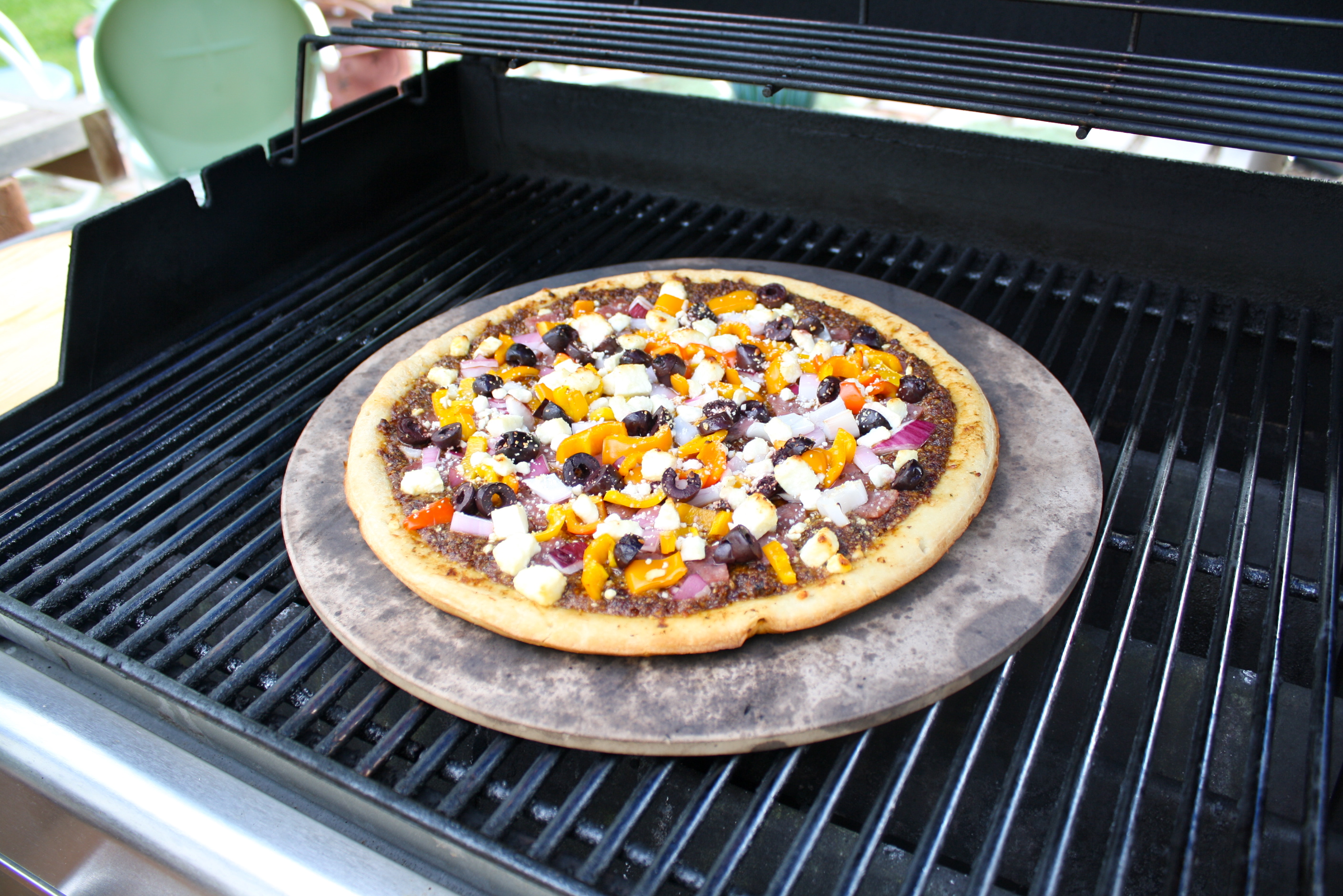 Put your pizza stone on the grill and heat to 425 F.