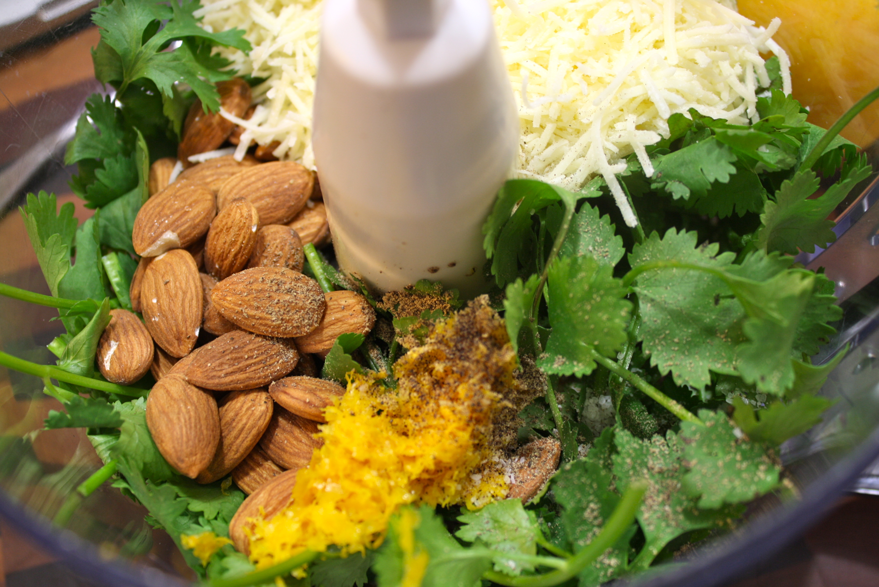 You’ll get the sweetness of orange and almonds, the freshness of Italian parsley, the zing of the olives and the bite of the asiago. All together in this quick little sauce.