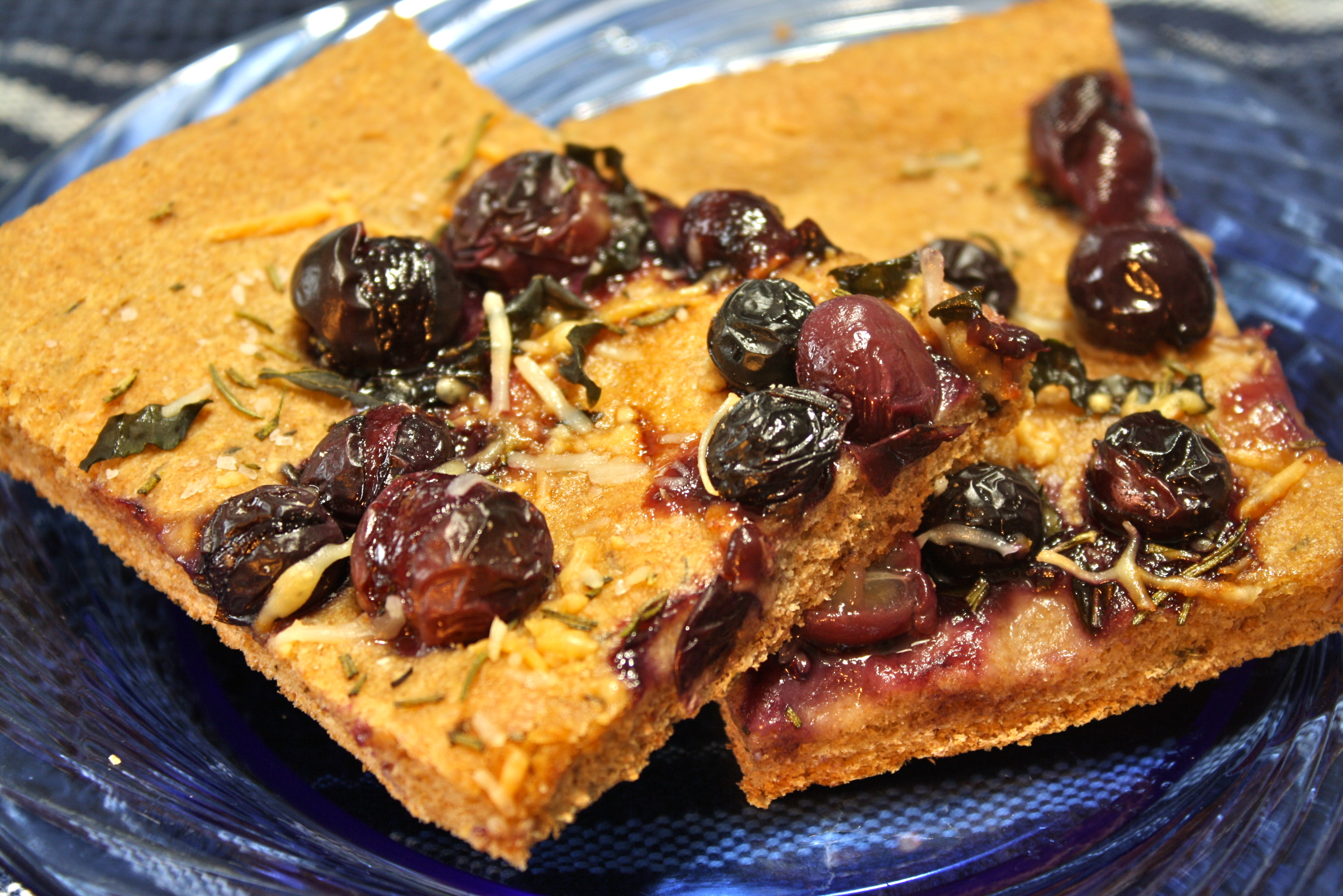 Sometimes you want to make something worthy of a grilled steak, at least with prices what they are nowadays. This is what I do; I make a special focaccia in the late summer-early fall when the new grape crop is coming in.