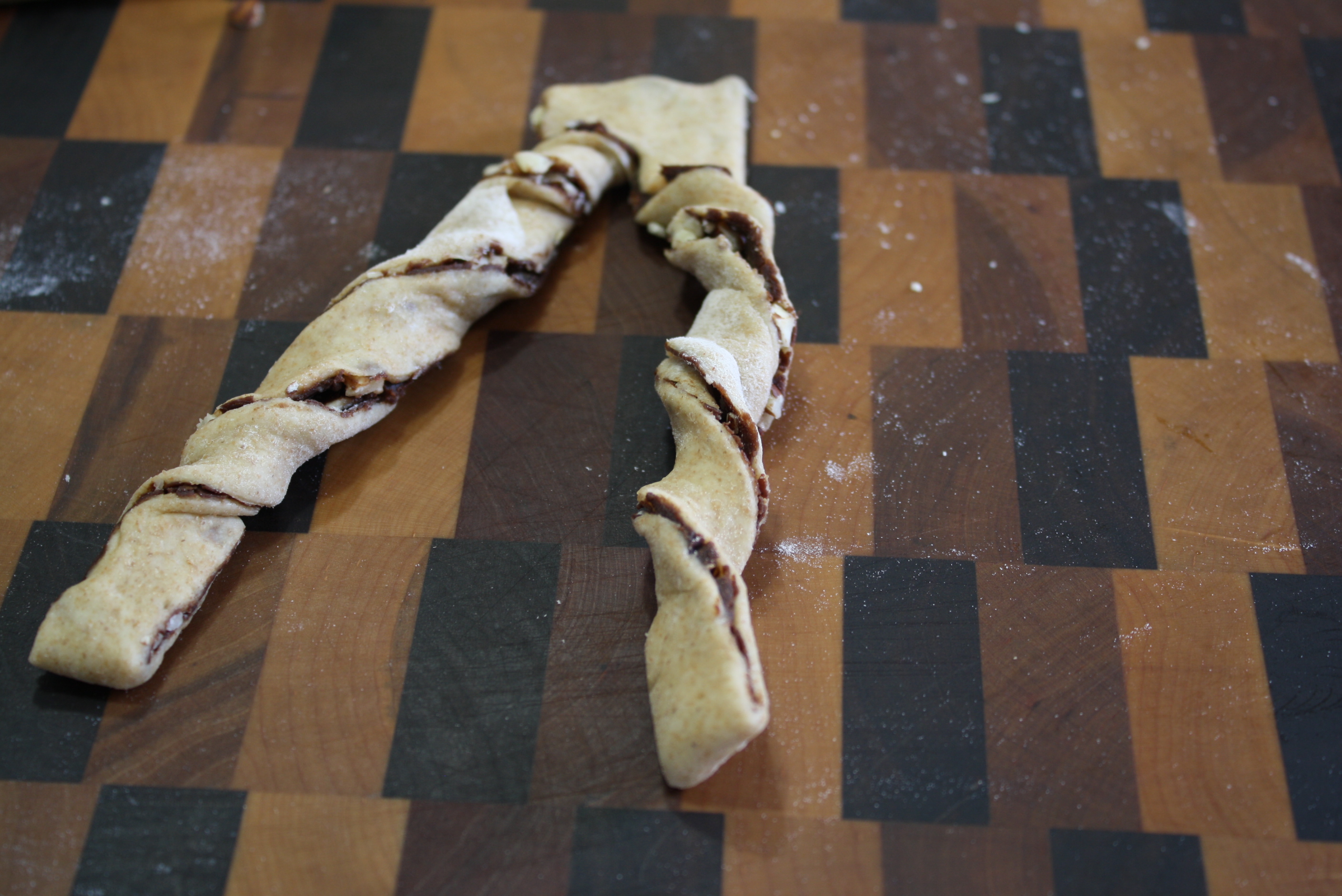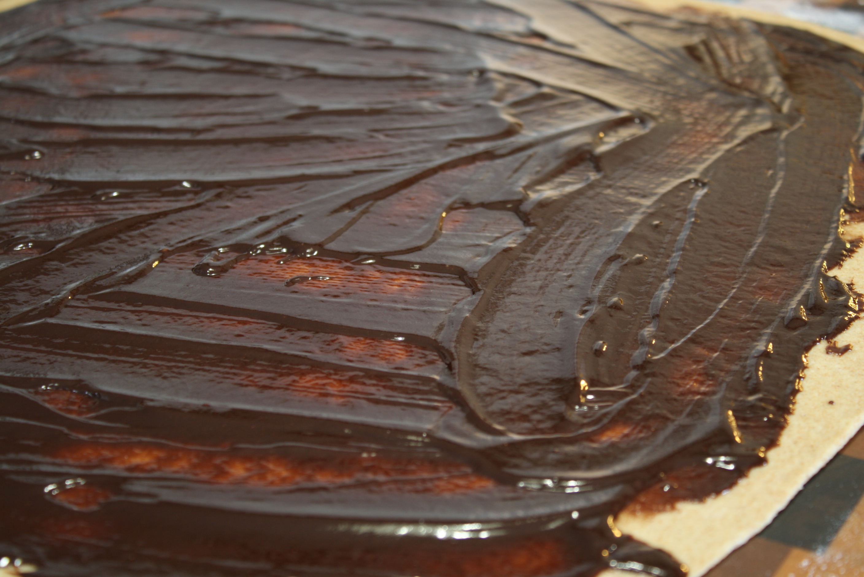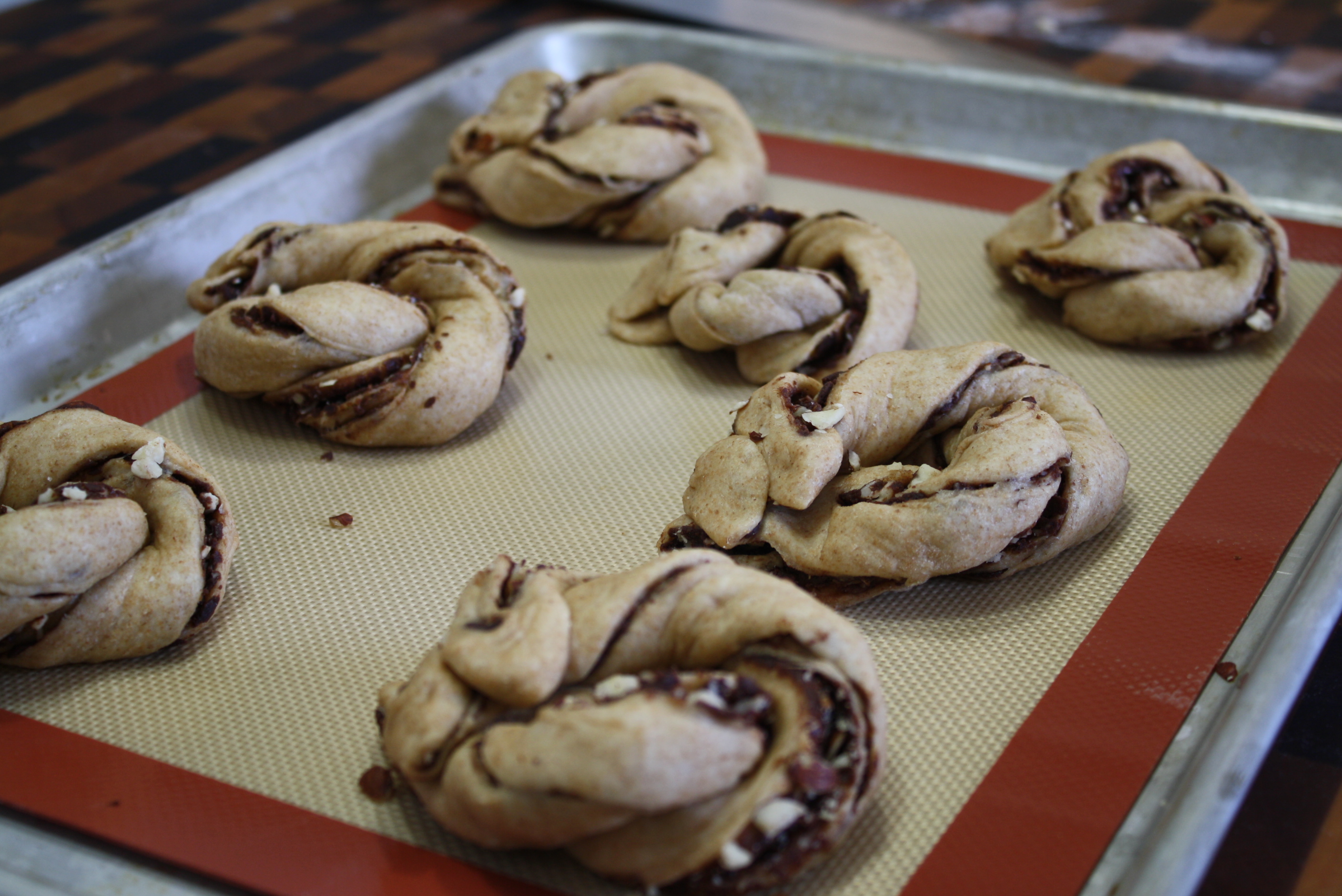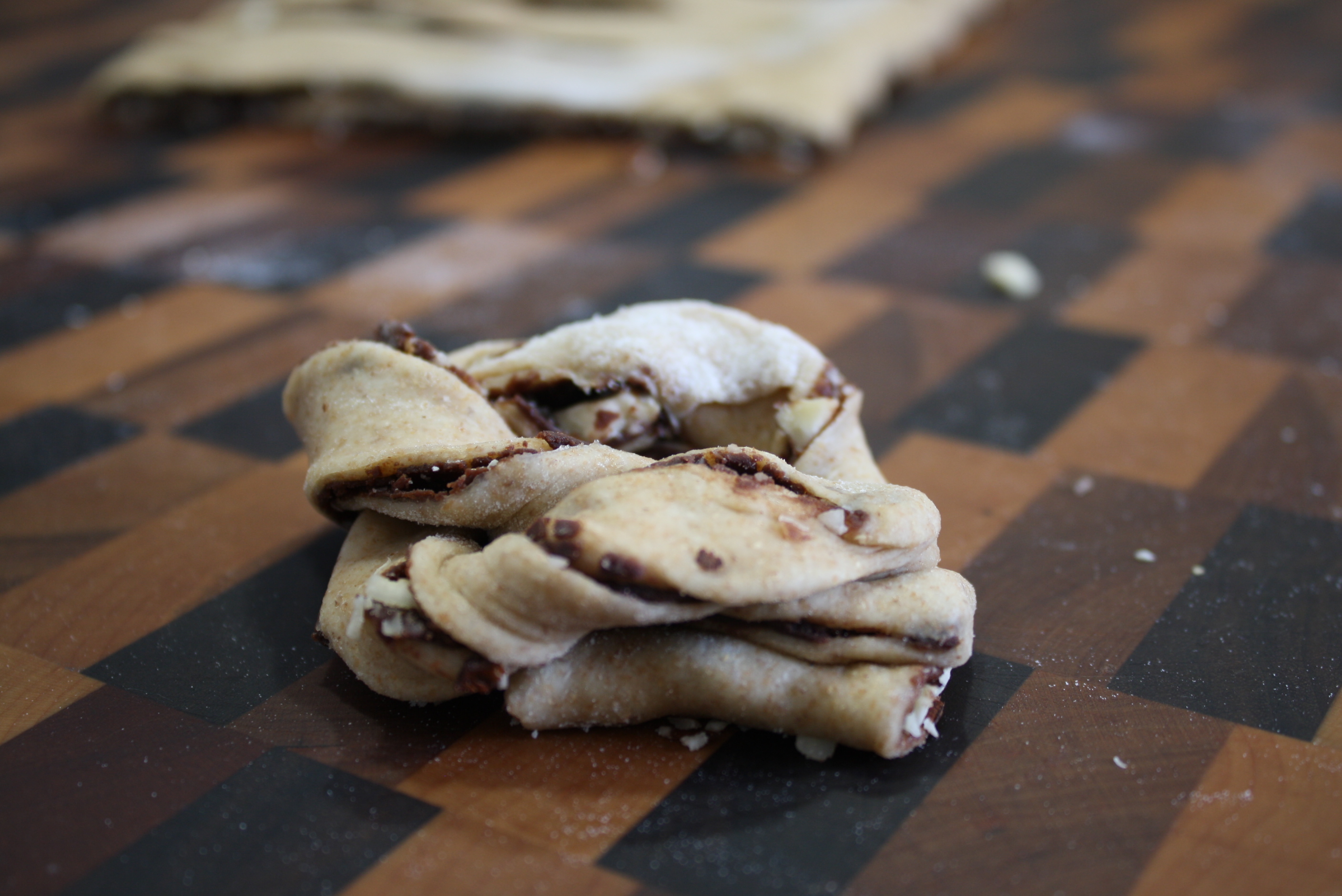 For this dough, I added milk and an egg to improve the flavor and elasticity. The chocolate sauce was simply made from Ghiardelli dark melting wafers and heavy cream with a good dose of cinnamon.