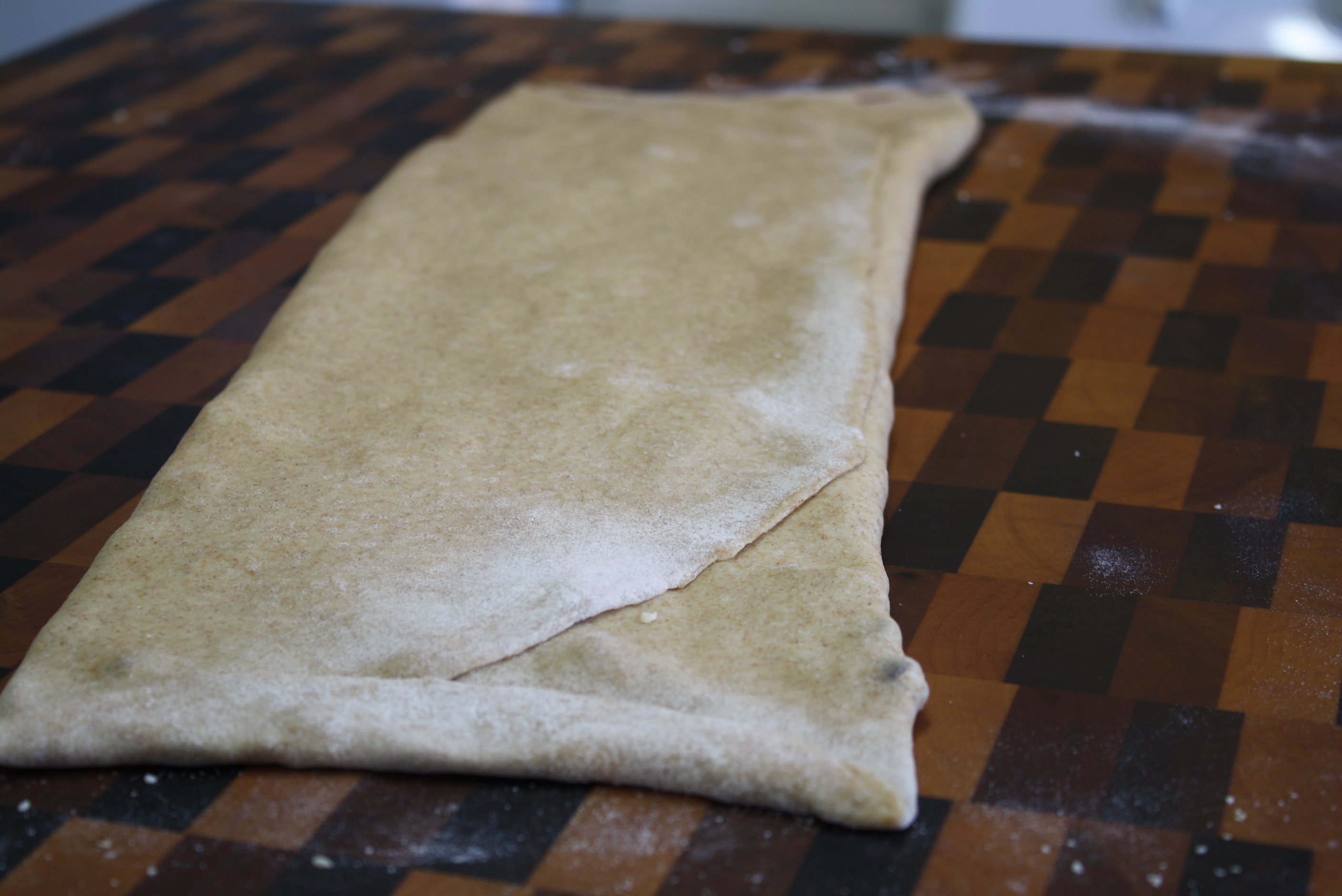 Fold the dough over lengthwise by thirds. Seal the ends.