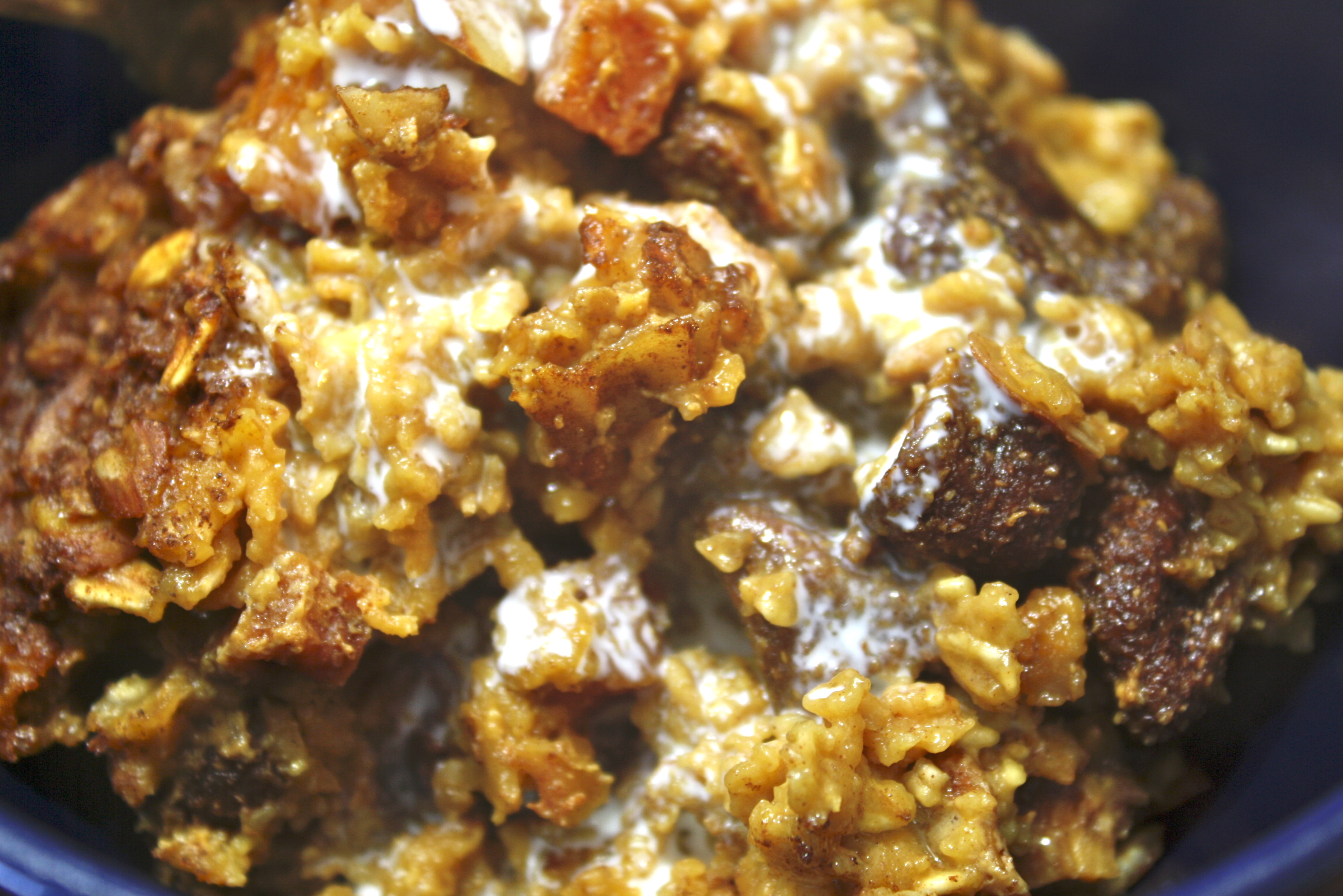 I have also found that molasses is the most complimentary sweetener. You get most of your sweet from the dried fruit. So molasses, with a more complex flavor, does a better job “rounding out” the dish. And I’ve learned to leave out the salt and baking soda…I made it once and forgot to add them…. didn’t miss their presence at all. I also left out the butter as well. A little dab when you eat it or just a tiny bit of cream or yogurt will accomplish just as much with fewer calories.