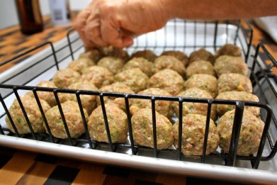 Jim likes to make bigger ones for the immediate meal…about 2 inches in diameter and puts them directly on the grill while the smaller ones cook in the basket. If you put them on before you place the basket and remove them after the basket, the cooking time comes out just right.