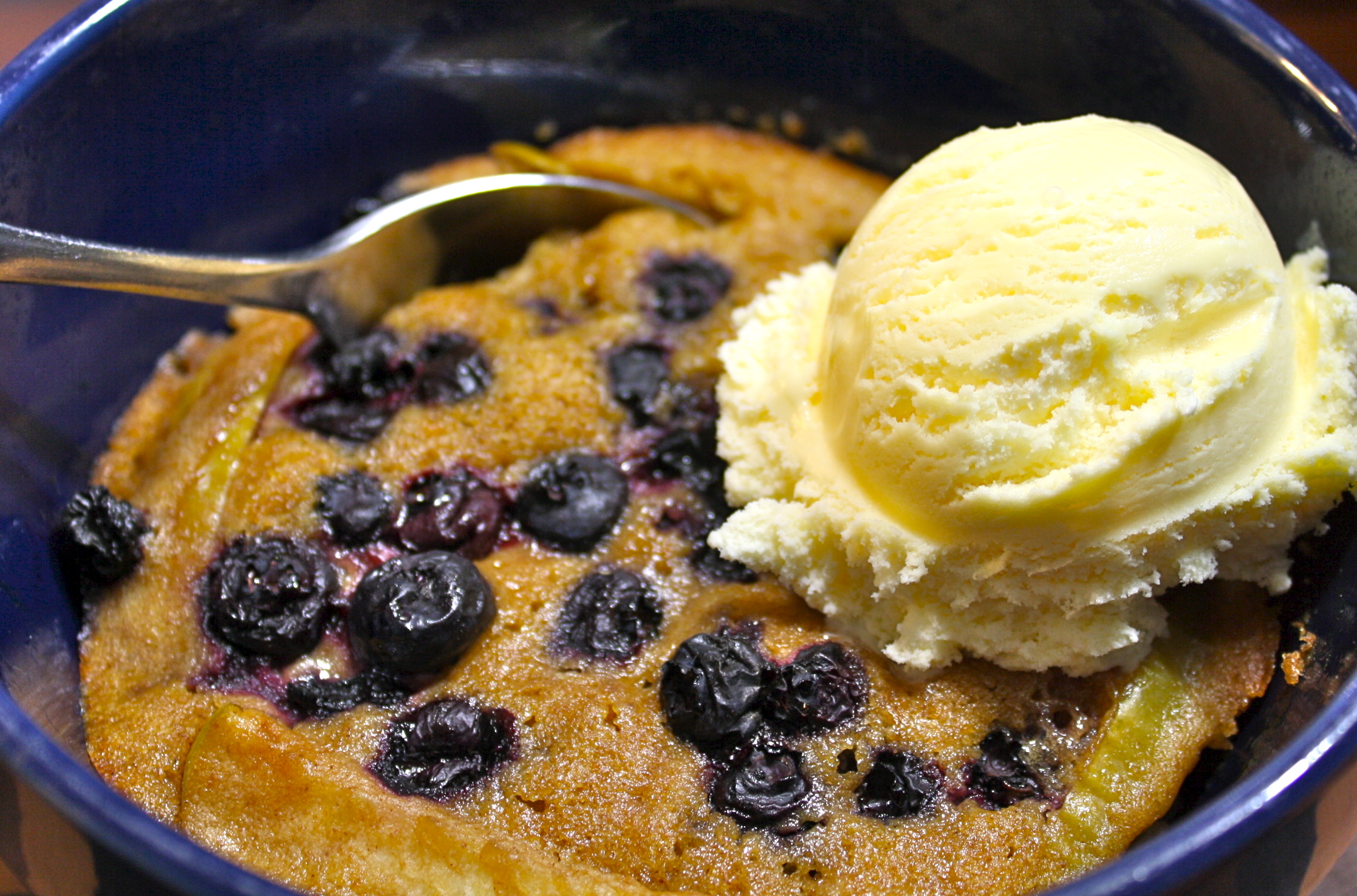 If someone would have asked me last week if I’d ever had Eve’s pudding, I would have answered, “what’s that?” So many dishes that are common in one part of the world and practically unknown in another. Eve’s pudding is a classic English dish with apples or other fruit and a sponge cake baked over the top. Sounded good to me, but of course with some modifications to bring it into my world.