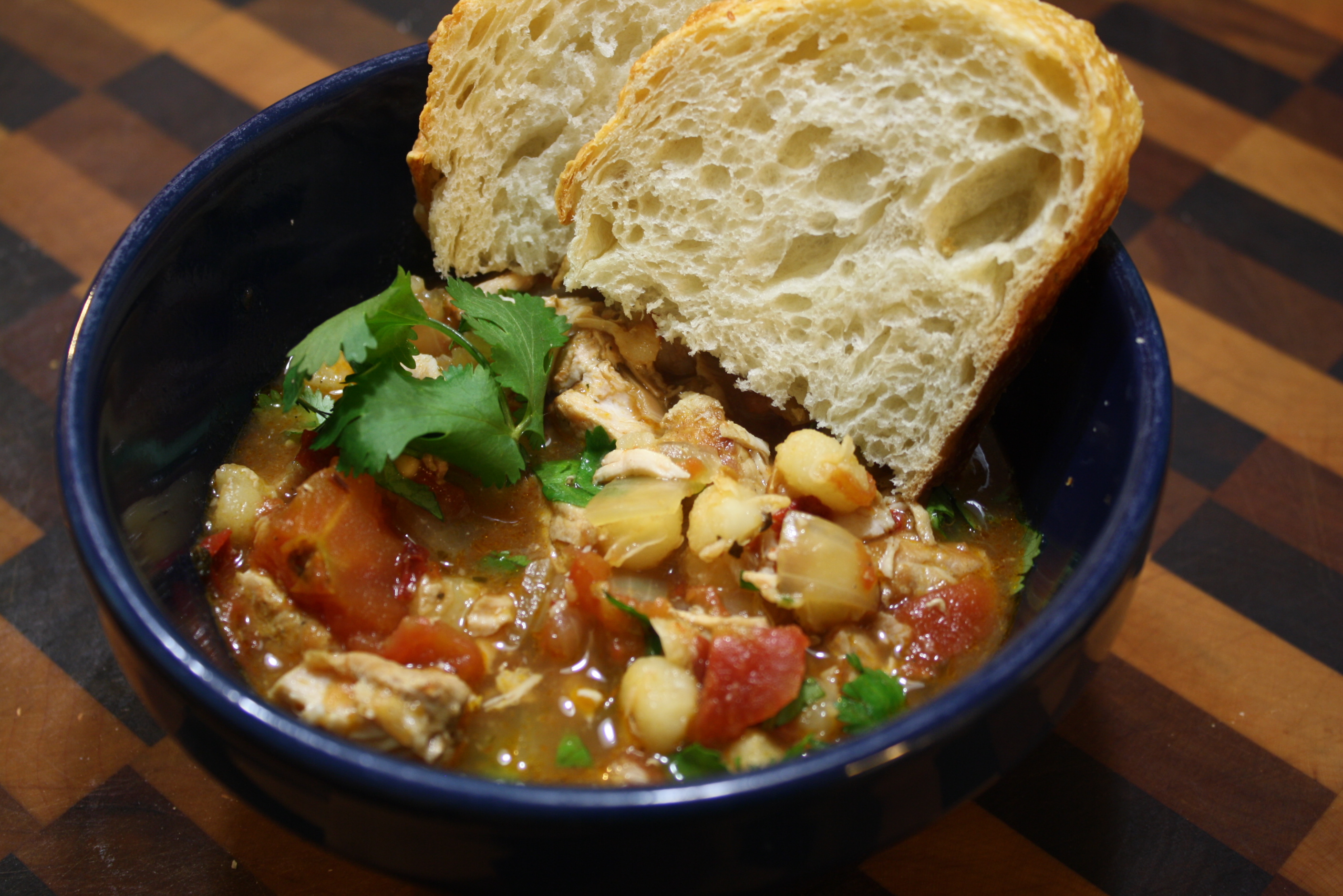 Add all the ingredients to the slow cooker and stir. Cook on low for 6-8 hours until pork is tender. Taste and adjust seasonings if needed. Ladle into bowls and top with chopped cilantro. Serve with crusty bread and slices of manchego cheese. Enjoy!