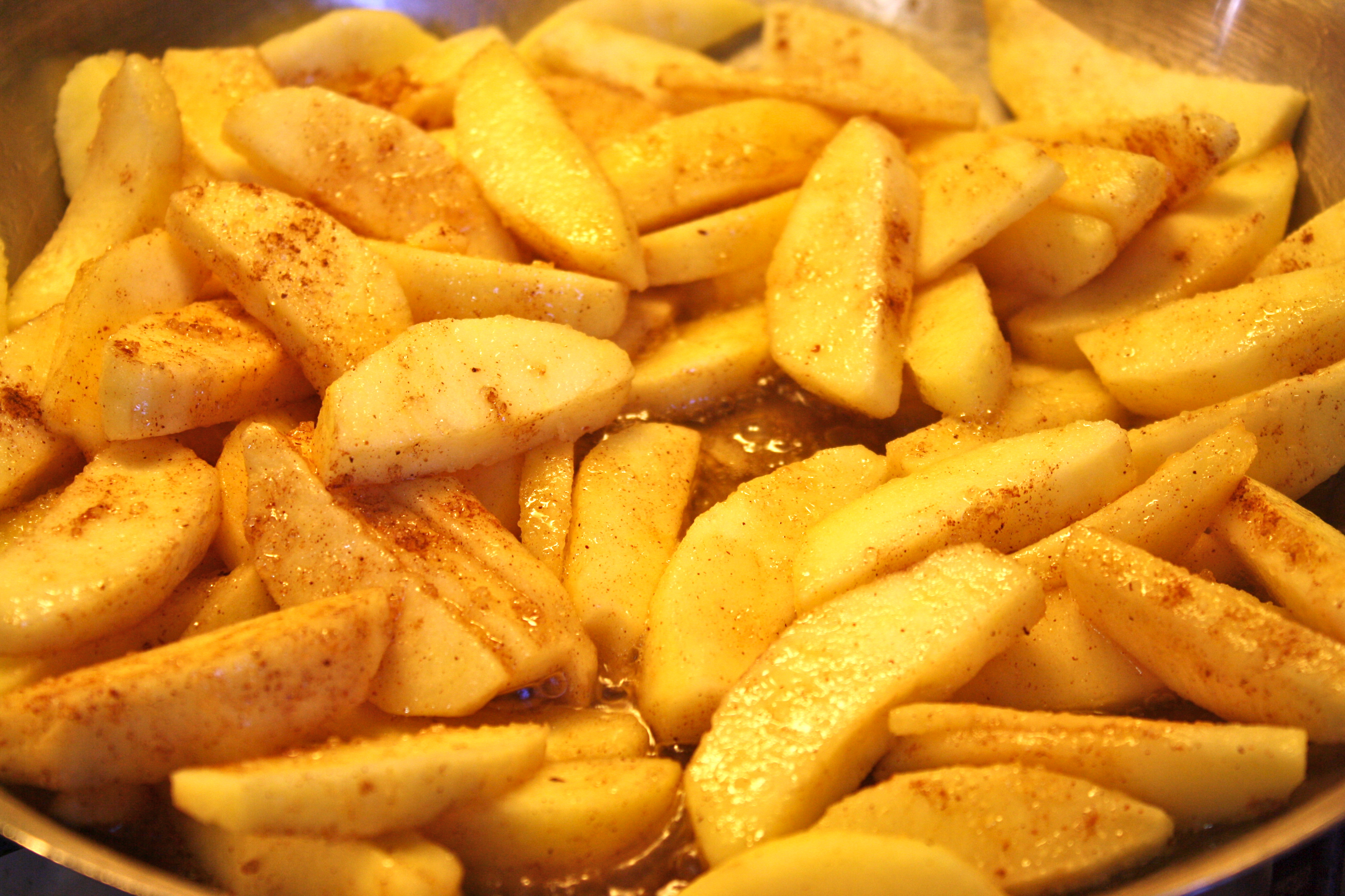 My oldest son was headed back to college this morning so I made a nice apple saute to serve over some quickly made french toast. My french toast is just fresh whole grain bread dipped in an egg/milk/spice batter and cooked on the stove. Pretty good eats in a pinch. Ready in less than 15 minutes….about how long the apple saute took….imagine that!