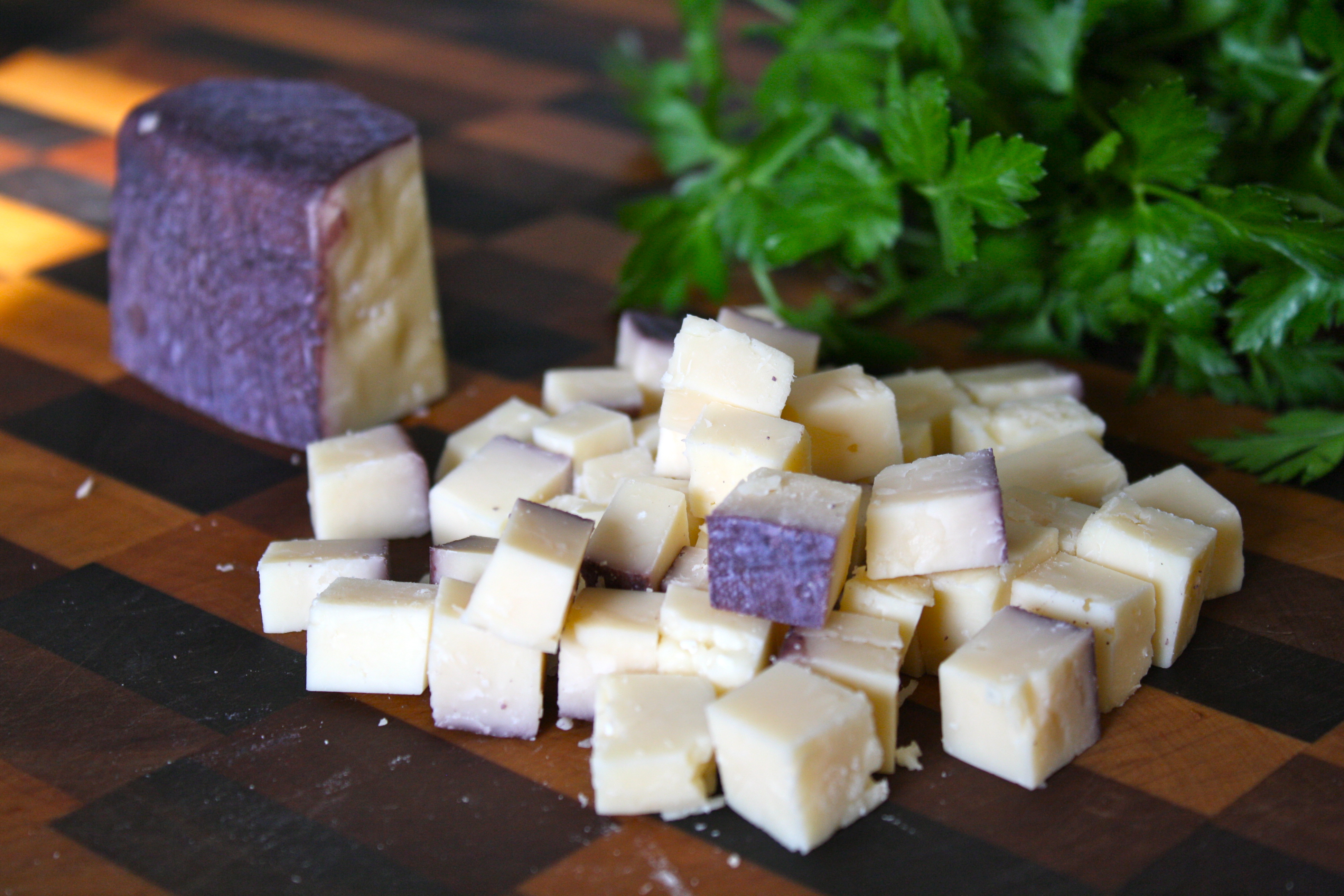 1/2 cup flavorful cheese cut into very small cubes (I used a Merlot infused Asiago)
