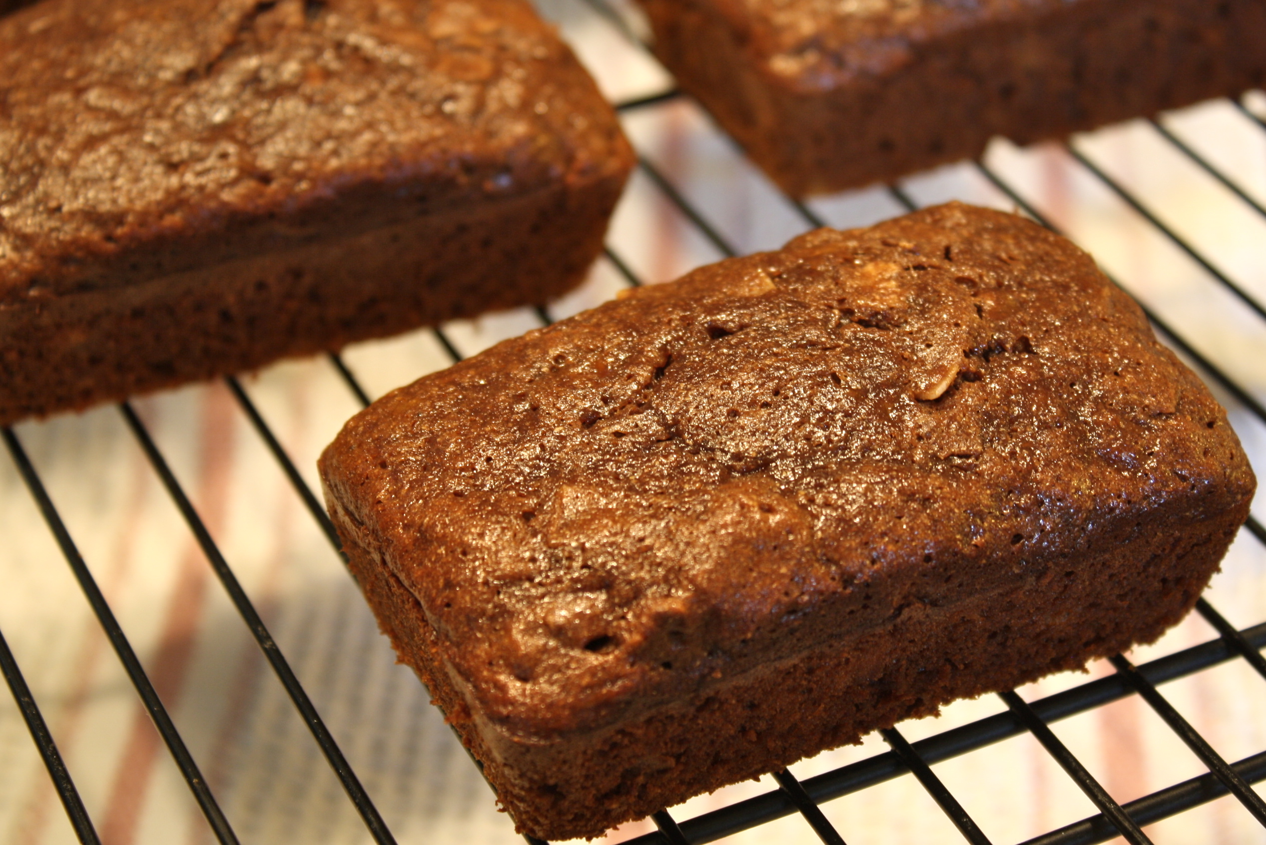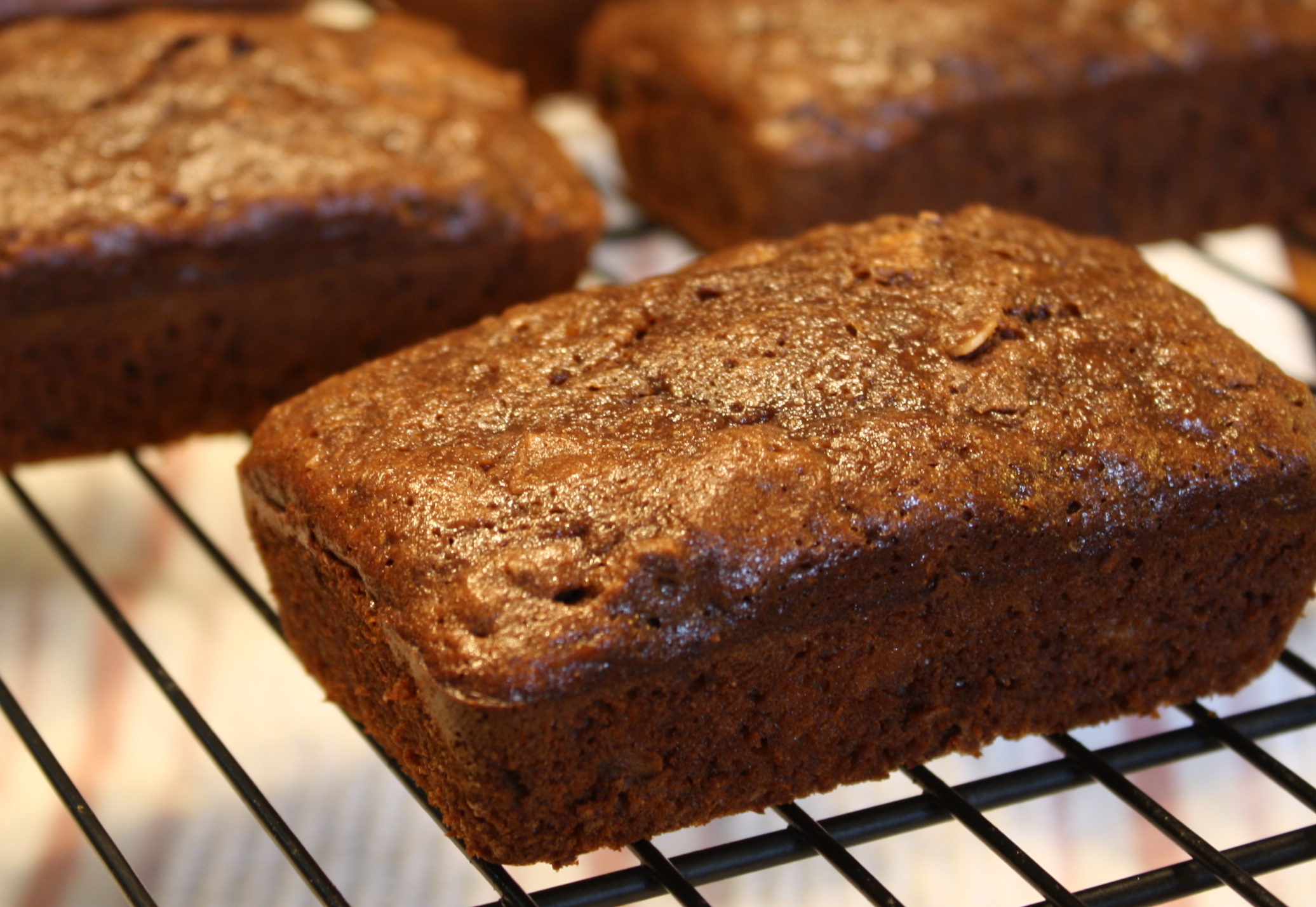 Pour batter into greased (or silicone) loaf pan or mini loaf pans. Bake for 35-40 min for single loaf or 25 min for mini loaves…..depending on your oven’s performance. Loaves are done when a toothpick inserted in center comes out clean. Allow to cool for 10 minutes and then remove from pan and allow to cool completely. Enjoy!